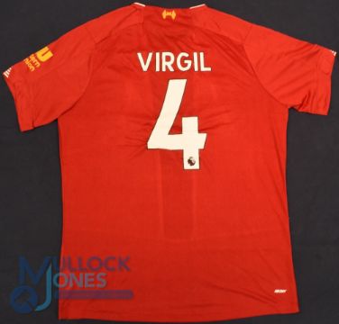 Liverpool FC home football shirt - 2019-2020 #4 Virgil, size L, New Balance / Standard Chartered, red with tags (G)