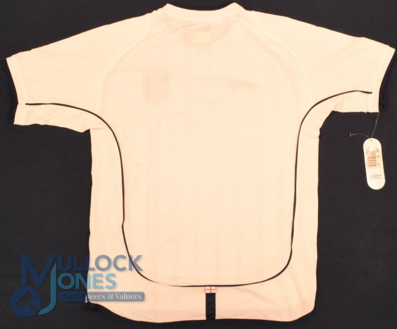 England FC home football shirt 2002 size LB, Umbro, white with tags, Titus Bramble signature on front (G)