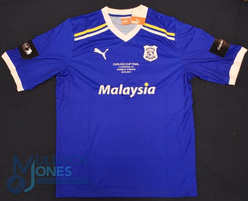 Cardiff City FC away football shirt 2012 Carling Cup Final size XL, Puma / Malaysia, blue with tags (G)