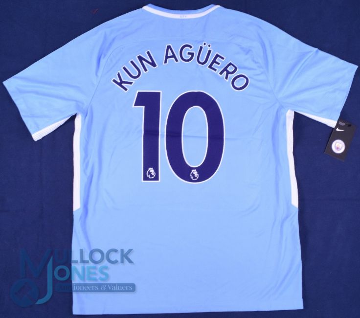 Manchester City FC home football shirt 2017-2018, #10 Kun Aguero, Nike / Etihad Airways, blue with tags (G)