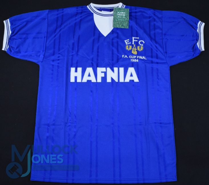 Everton FC home football shirt by Score Draw 1984 FA Cup Final, Size M, Hafnia, blue with tags