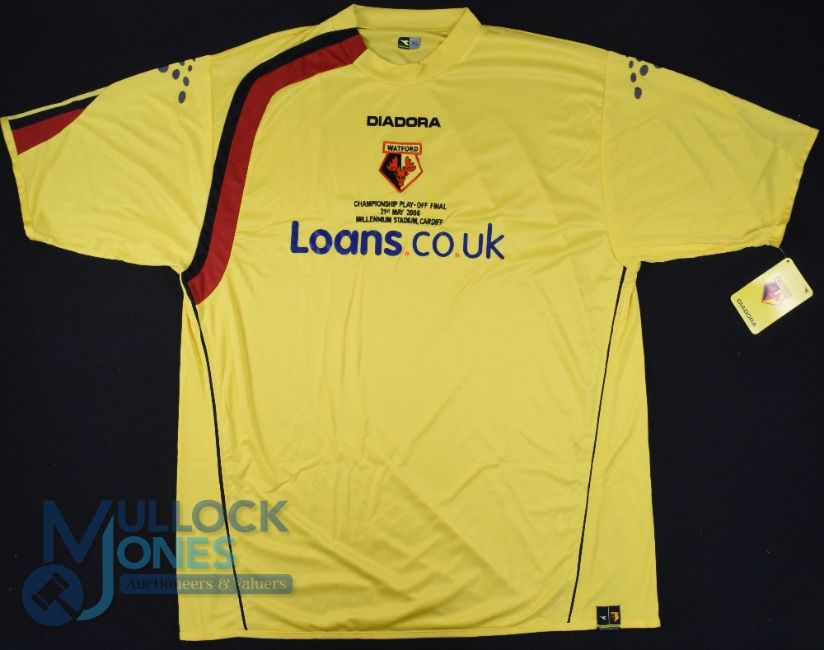 Watford FC home football shirt 2006 Play Off Final Limited Edition 137/500, Size XL, Diadora / Loans.co.uk, yellow with tags, COA and carrier bag (G)