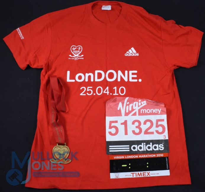 London Marathon 2010 T-Shirt, Medal, participants number and a magnetic finish time label
