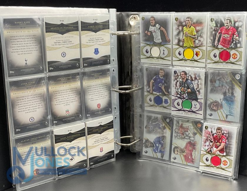 Topps Premier Gold Soccer Cards 2016 with 13 Relic Cards Player worn shirt samples and 9 Signed cards Jermain Defoe, Gylfi Sigurdsson, Jon Walters, Andros Townsend, Dan Gosling, Nathan Dyer, Divock Origi in an Ultra Pro Collectors Album