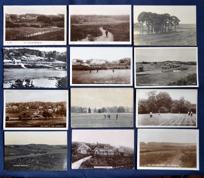 Interesting collection of early Broadstone Golf Club black and white golfing postcards from the early 1900s onwards (12) to include various views of the golf links including Home Green, Golf Clubhouse, 10th Green - 6x used dates include 1910, 1914, 1921, 1927 and 1943 - including Kingsway Real Photo Series; J Salmon; L French PO Broadstone; Harvey Barton & Son Bristol; M Meatyard Broadstone