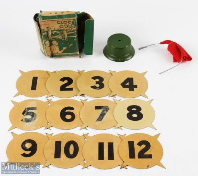 Vintage Tin Golf Clock Game in its original card box with instruction printed to its sides
