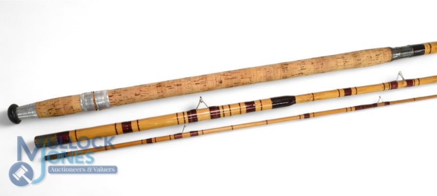 Falcon Lighthouse Brand Spanish reed - with spliced split cane tip, 13ft 3pc match/float rod, 31" handle with alloy sliding reel fittings and collars, stand off rings with agate lined butt/tip, no bag. Very light use, looks original