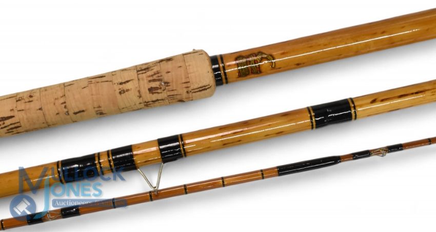 Milward Senior Featherlite 13' 3 piece cane match rod, refurbished, Spanish reed butt/middle, split cane stepped tip, black whipped high bells guides, bronze ferrules, 20.5" cork handle with light alloy reel rings, fine looking rod, no bag.