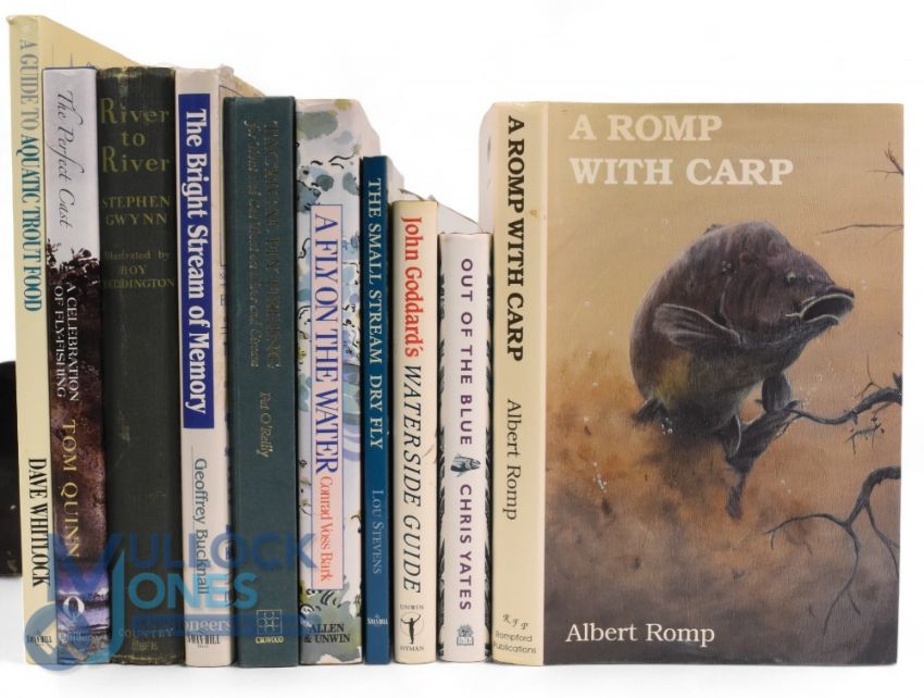 Ten Fishing Books - A Romp with Carp 1992 Albert Romp, Out of the Blue 2008 Chris Yates, Waterside Guide 1988 John Goddard, The Small Stream Dry Fly 2003 Lou Stevens, A Fly on the Water 1986 Conrad Voss Bark, Tactical Fly Fishing 1990 Pat O'Reilly, The Bright Stream of Memory 1997 Geoffrey Bucknall, River to River 1937 Stephen Gwynn, The Perfect Cast 2011 Tom Quinn, A Guide to Aquatic Trout Food 1994 Dave Whitlock - mixed condition