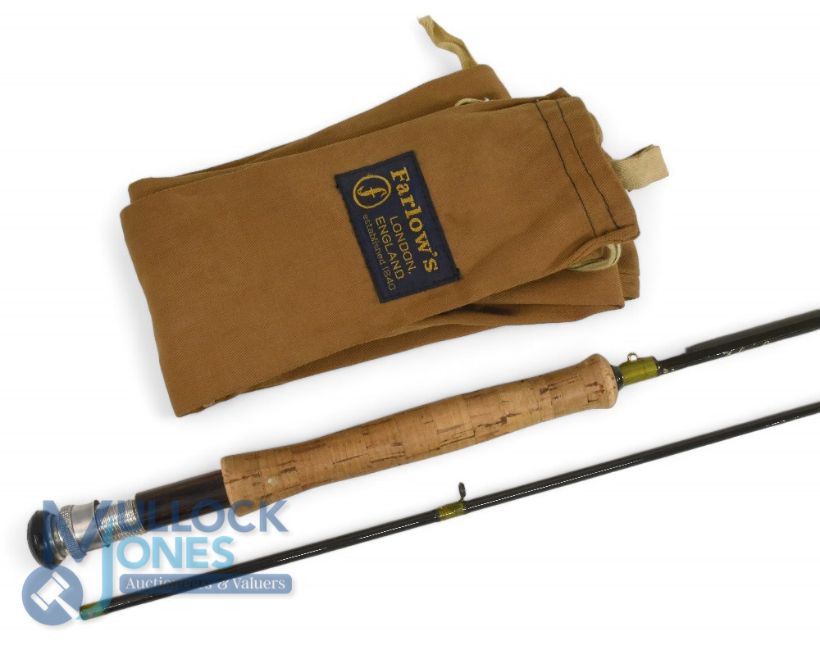 Farlow Boron Reservoir Special 9'6", 2 piece trout fly rod, #7/9, green whipped lined guides, spigot ferrule, cork handle, wood spacer and up screw reel fitting, rarely seen rod, in MOB.
