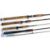 A collection of 4x one piece spinning rods, all with no bags - Storm Quick Fire Spiral carbon spinning rod, 7ft 6", action 12-20lb. Hartland X carbon spinning rod, 6ft 6" medium heavy lure 1/4 - 1oz, 10-20lb. Silstar MX-3501-10 carbon composite spinning rod, 6ft, action B10-20. Masterline Toothy Critter jerk bait carbon spinning rod TC600, 6ft, 1-4oz. (4)