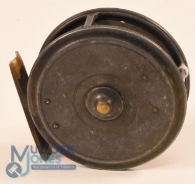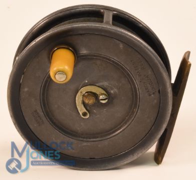 Hardy Bros "The Uniqua" c1906 alloy trout fly reel, 3" spool with 4 cusps, horseshoe latch, ivorine handle, stamped Hardy Alnwick / Hardy's Patent Uniqua, filed 4 screw brass smooth foot, weak check