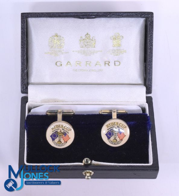 1993 Johnnie Walker Ryder Cup Golf Garrard Cufflinks: a pair of silver gilt cufflinks in original leather fitted retail box