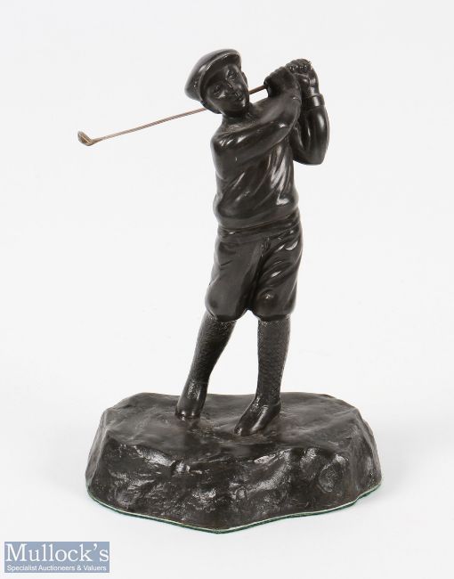 Spelter Golfing Figure - depicts juvenile golfer in action pose measures 8.5" height approx.