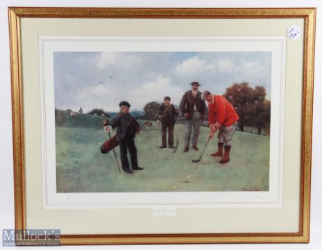 Golf Print William Pimm limited edition No140/500 titled putting, framed and mounted under glass size 66cm x 84cm (not suitable for posting)