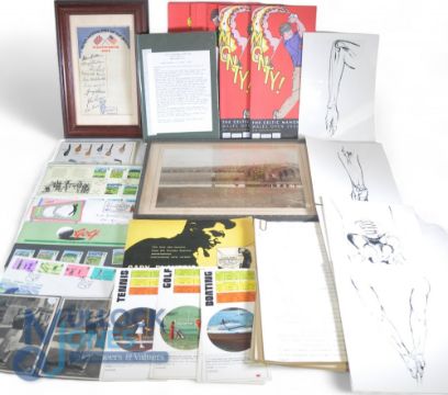 Mixed Lot of Golfing Paperwork. Consisting of Golf photographs, Gary player Golf class, 1953 Ryder Cup penfold sheet, First Day Covers, Postcards, 2006 The Celtic Manor drawsheet qty, Golf Guide James Braid, Walker Cup 1994 program and score sheets (box)