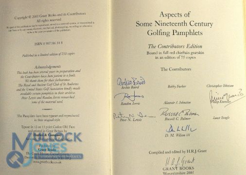 Aspects of Some Nineteenth Century Golfing Pamphlets Contributors Edition. 2005 Limited edition of 75 copies of which this is copy number 24. in Full Red Leather in Slipcase and Signed by Archie Baird, Randon Jerris, Philip Knowles, peter n Lewis, Russel C Palmer, D M Wilson III, H R J Grant