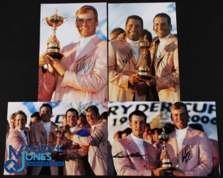 Collection of 2006 European Team Ryder Cup 'After Celebrations' signed Press Photographs (4) - to incl Spanish Pair Sergio Garcia and Jose Maria Olazabal; Swedish Pair Henrik Stenson and Robert Karlsson; British Players Luke Donald, David Howell, Paul Casey and Lee Westwood; and another of Robert Karlsson - all 8.25" x 11.5"