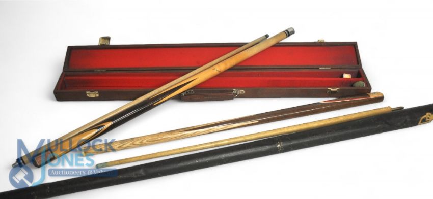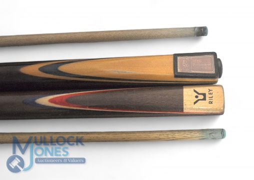 Snooker Cues. Two-piece Riley full size cue with metal case, together with Two-piece Eddie Charlton Power Glide cue in padded case (2)