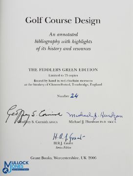Cornish & Hurdzan Golf Course Design Fiddler's Green Golf Course Design: An annotated bibliography with highlights of its history and resources. 2006, red Moroccan leather binding ltd edition No.24 of 75 copies deluxe editions signed by authors, min original slip case G