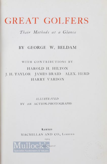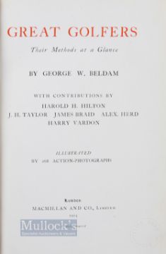 Bedlam, George W (Presentation Copy) - 'Great Golfers Their Methods at a Glance' 1904 London: Macmillan & Co, with embossed stamp, cloth boards and gold gilt covers, tear at spine to front covers, o/w tight binding, clean internally overall