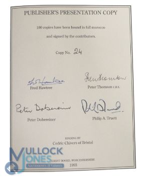 Hazards Publisher's Presentation Copy Edition. 1993 Limited edition of 100 copies of which this is copy number 24. signed by the Contributors. Fred Hawtree, Peter Thomson CBE, Peter Dobereiner, Philip A Truett Limited in Full Green Morocco Leather in Slipcase