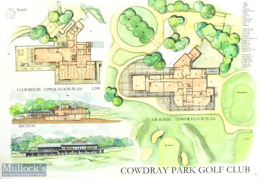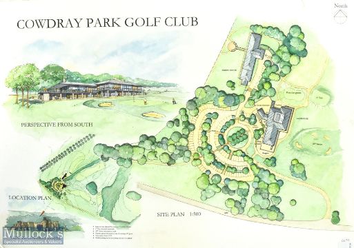 Cowdray Park Golf Club Presentation Architectural Plans printed display in colour depicting various elevations and site plans - measuring 85x59cm approx.