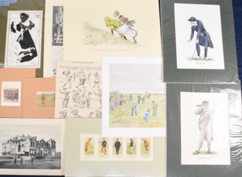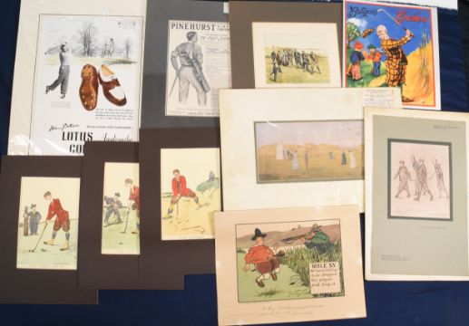 Mixed Lot of Golfing Prints and Adverts. Edmund Fuller prints, Crombie together with original advert and prints from publications (box)
