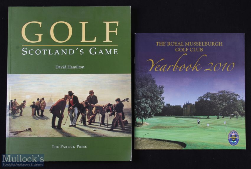 Hamilton, David - "Golf - Scotland's Game" publ'd 1998 - a full colour litho printed publication for general sale, 269p appears unread hence (VG); and 2010 The Royal Musselburgh Golf Club Handbook (5th oldest Golf Club in the world) (VG)
