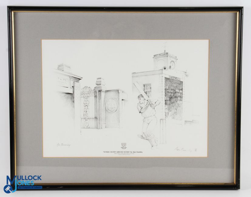 3x Alan Fearnley limited edition Cricket Prints, to include Sussex County ground scenes 135/850, Oval Scenes 843/850 and the Pavilion Taunton signed in pencil by Vic Markes 767/850 sizes #43cm x 55cm and 49cm x 62cm