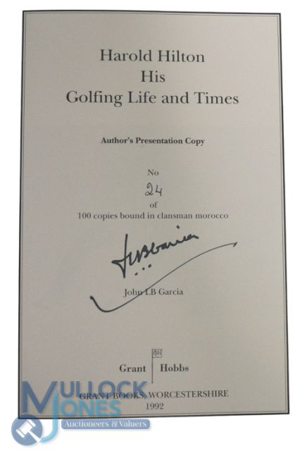 Harold Hilton His Golfing Life and Times Author's Presentation Copy Edition. 1992 Limited edition of 100 copies of which this is copy number 24. Author's Presentation Copy. Limited in Full Blue Morocco Leather in Slipcase and Signed by the Author.