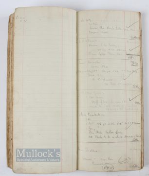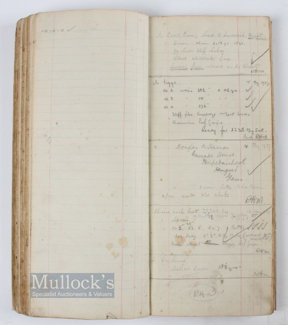 Fred Robson Golf Professional at Addington Palace Golf Club 1936 Official Club Order Ledger - covering the period from 1936-1938 to incl sales and repairs from Monday 23rd March 1936 - 1st April 1938 - with over 1300 entries - French PGA, Sam King (Ryder Cup), Lady Alness, Marquis Malaspinci Rome, Japanese Embassy, J Moore- Brabazon (Capt R&A), Miss C de Rothchild, Mr Darwin, Gradidge, Mr Cecil Ewing Walker Cup Team, Lord Lurgan, Lord Dundonald, Fortnum & Mason, Lady Cholmondeley, others went to Cairo, Australian costumer et al - most entries incl size, number of irons, style, weight, shaft and grips.