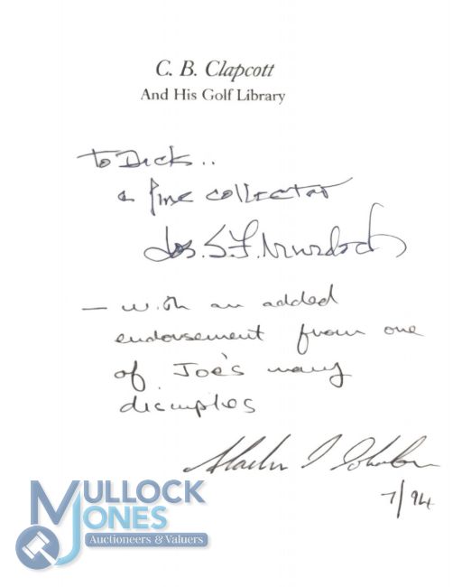 C. B. Clapcott And His Golf Library. 1989 by Alastair J Johnson and Joseph S F Murdoch limited edition of 300 copies of which this is copy number 24 signed by Murdoch and Johnson and dedicated on fly sheet page