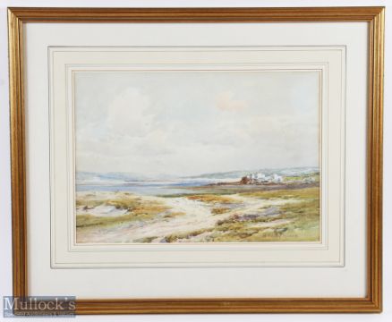 H Percy Heard - RBA, RA, Walker Gallery (1866-1940) - "West Appledore from The Golf Links Westward Ho!" original water colour signed lower right together with the title to the original back board image 10.25 x 14.5" - overall 18" x 22" c/w full details laid down to the back board.