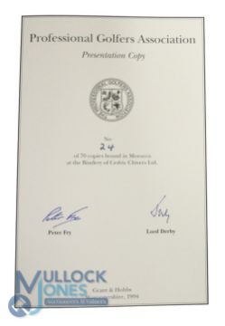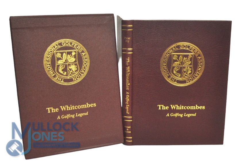 The Whitcombes A Golfing Legend Professional Golfers Association Presentation Copy Edition. 1994 Limited edition of 70 copies of which this is copy number 24. Author's Presentation Copy. Limited in Full Maroon Morocco Leather in Slipcase and Signed by Peter Fry and Lord Derby