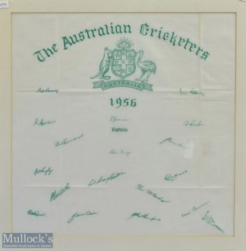 1951 The Australian Cricketers printed signed Handkerchief, made by Caressa House with replica signatures, mounted and framed under glass, size 58cm x 58cm