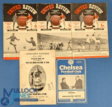 1963-1964 Manchester United Football Programmes, 1963 away v Chelsea, 1964 v Wolves, v Bristol Rovers, Sunderland and FAC 2nd round replay v Sunderland Fair (5)