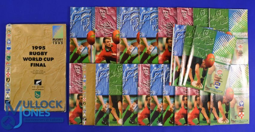 1995 RWC Final etc Rugby Programmes (24): 'The Golden Book': much sought after, biggest issue from what was one of the biggest games ever - S Africa v NZ, Mandela, Pienaar and all, 1995, a must-have. Plus all the pool games except SA v Romania. Do not miss out!
