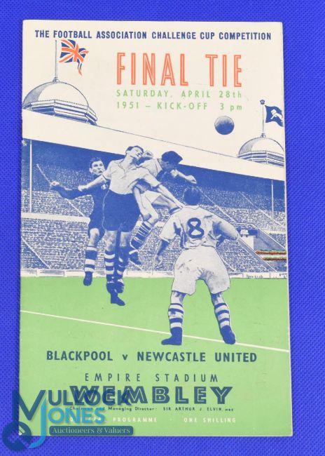 1951 FA Cup final at Wembley Blackpool v Newcastle Utd match programme 28 April 1951; centre fold (kept flat for years) overall fair. (1)