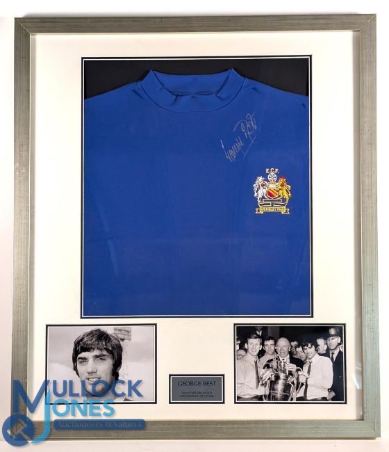 George Best 1968 Manchester United Replica ECF Final Shirt, above a George Best montage, framed and mounted under Perspex - with COA from Sporting Moments
