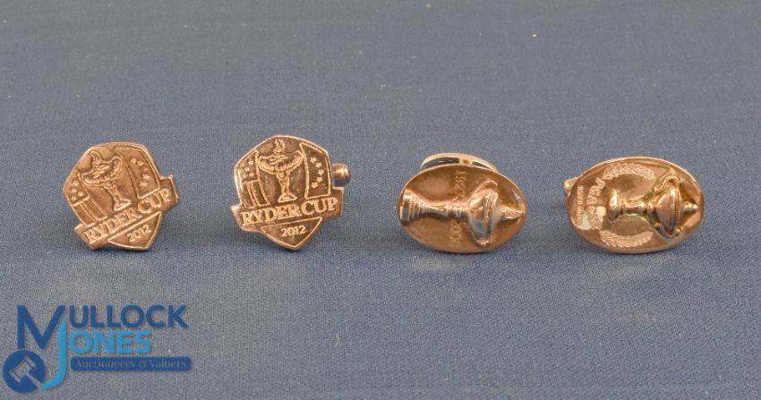 Collection Ryder Cup and PGA Cup cufflinks (4) to incl white metal 2012 Ryder Cup Medinah pair of cufflinks, single Ryder Cup cufflink dated 1927-2006 and a single PGA Cup cuff link dated 1973-2011. Note From the Estate of The Late Sandy Jones CEO of The PGA