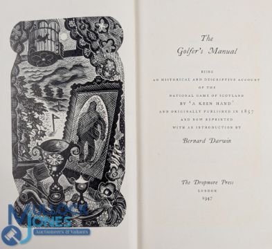 Farnie, H B (A Keen Hand) The Golfers Manual being a Historical by a Keen Hand 1857 - reprint with intro by Bernard Darwin, 1st edition, green decorated boards, Dropmore Press, London, 1947. No. 638 of 750 copies, within original slip case G