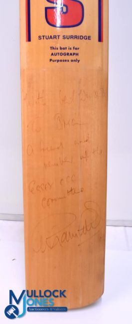 Cricket Bat - SS Stuart Surridge Turbo for Autograph only Cricket Bat with the writing 'with best wished to Brian A friend and member of the Essex CCC Committee' and an unknown signature