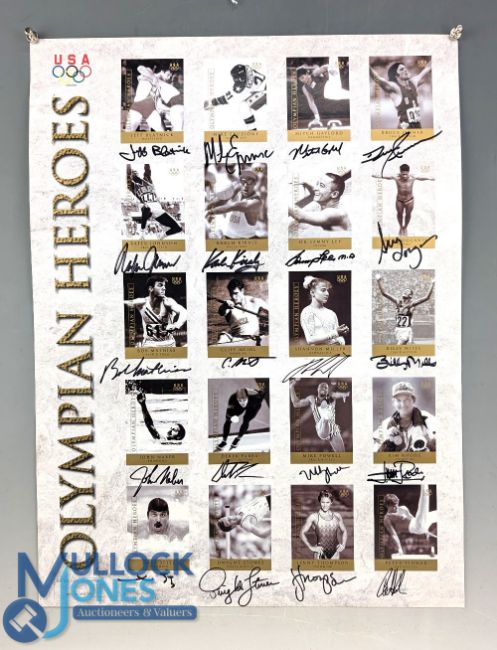 2004 USA Olympic Olympian Heroes Limited Edition Print, uncut sheet of 20 cards all with original signature - a HSJ Inc limited edition, with 20 good signatures - size #46cm x 66cm