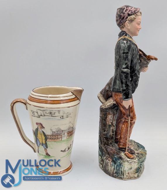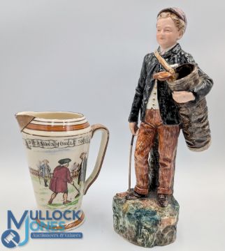 Royal Doulton Uncle Toby Series Golf Jug - 'Diversion of Uncle Toby, with maker's marks to base D3121, height 12.5cm approx. t/w an unnamed Ceramic Golf Caddy in colourful design, marked 223711 to internal base, measures 23.5cm height