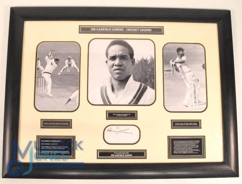 Sir Garfield Sobers (signed) Cricket Display with signature in ink to centre, featuring three black and white prints, information below, framed and ready to display measuring 80x59cm approx. with COA