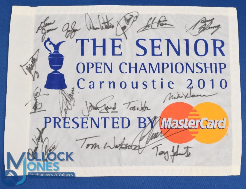 2010 Carnoustie Senior Open Golf Championship profusely signed pin flag - to include major winners Tom Watson, Bruce Vaughan, plus 15x other players incl Tony Johnston