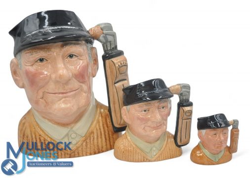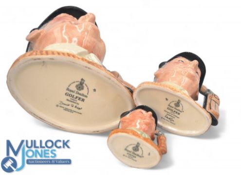 Royal Doulton The Golfer. Large D6623 modelled by David P Biggs, Medium D6756 Modelled by Peter A Gee, Small D6757 (3)