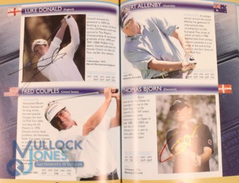 Autographs - multi-signed 2006 Open Golf Championship programme - signed by 34 including Vijay Singh, Bart Bryant, Luke Donald, Thomas Bjorn, Aaron Oberholser, Ben Crane, Zach Johnson, Stuart Appleby, Tom Lehman, Nick Dougherty, Rod Pampling, Carl Petterson, Paul Broadhurst, Nick O'Hern, Fred Funk, Chad Campbell, Kerry Perry, K J Choi, Padraig Harrington, Stewart Cink, David Howell, Todd Hamilton, Miguel Angel Jimenez, Rich Beem, Tim Herron, Scott Drummond, Shaun Micheel, Paul Lawrie, Edoardo Molinari and Charl Schwartzel