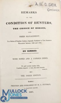 1837 Nimrod Remarks on the Condition of Hunters, The Choice of Horses, and Their Management in a Series of Familiar Letters, Originally Published in The Sporting Magazine between 1822 and 1828 Nimrod (Charles James Apperley) printed and published by M A Pittman, London 1837, quarter leather binding